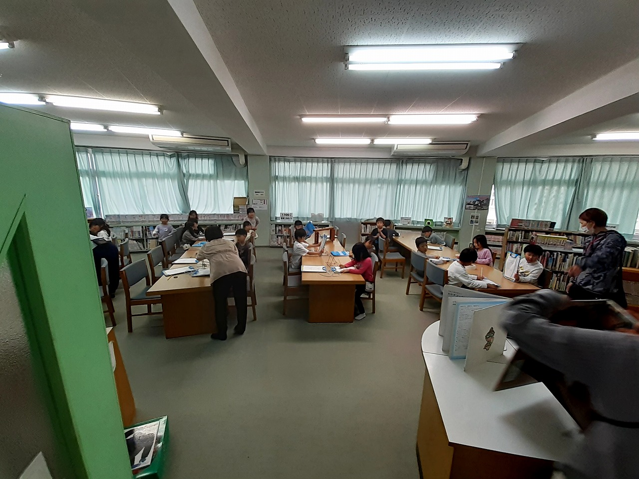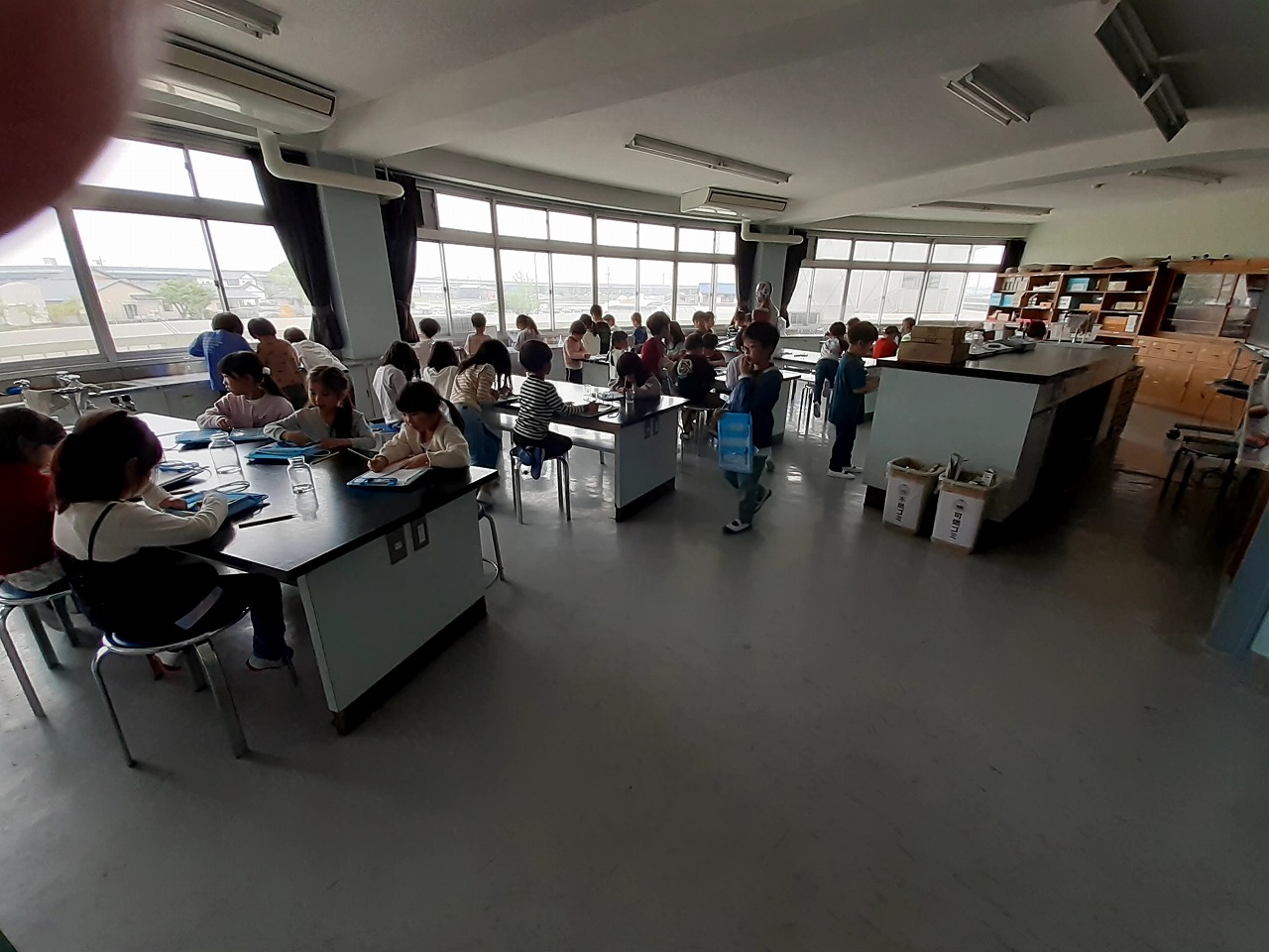 円形校舎の図書室や理科室、家庭科室、図工室の4教室から、