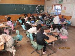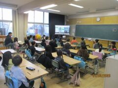 また、冬休みの思い出をふりかえる「すごろく」や「ビンゴ」をしました。子どもたちは、とっても楽しそうに友だちと話をして楽しんでいました。