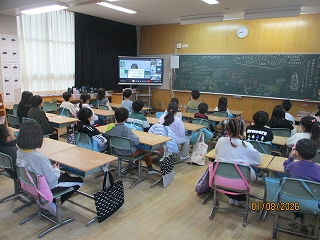 子どもたちは、校長先生のお話を聞きながら、3学期の生活に関してどのように過ごすかについて考えていました。