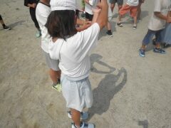 影を感じるため、影遊びを楽しみました。影踏みをして、どのようにしたら逃げやすいかを考えました。