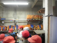 防火服の棚です。それぞれが、すぐ着替えられるように工夫がされていました。
