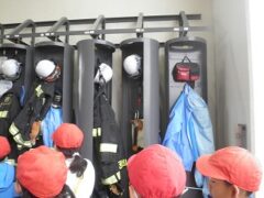 社会科や総合の学習として、四日市市北消防署朝日川越分署に見学に行きました。