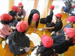 班で手をつないで、声を掛け合って楽しそうにジャンプしていました。