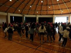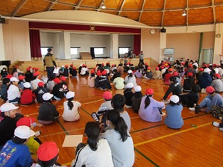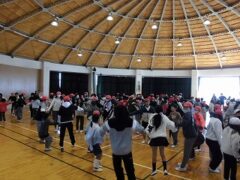 はじめに、1組が考えた「みんなでジャンプ」をしました。