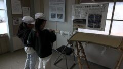 子どもたちは、「これは何だろう?」と、道具についての説明をじっくり読んでいました。