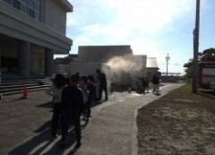 クラスに分かれ、「てんぷら油の実験」「水消火器の体験」「けむり体験」を行いました。