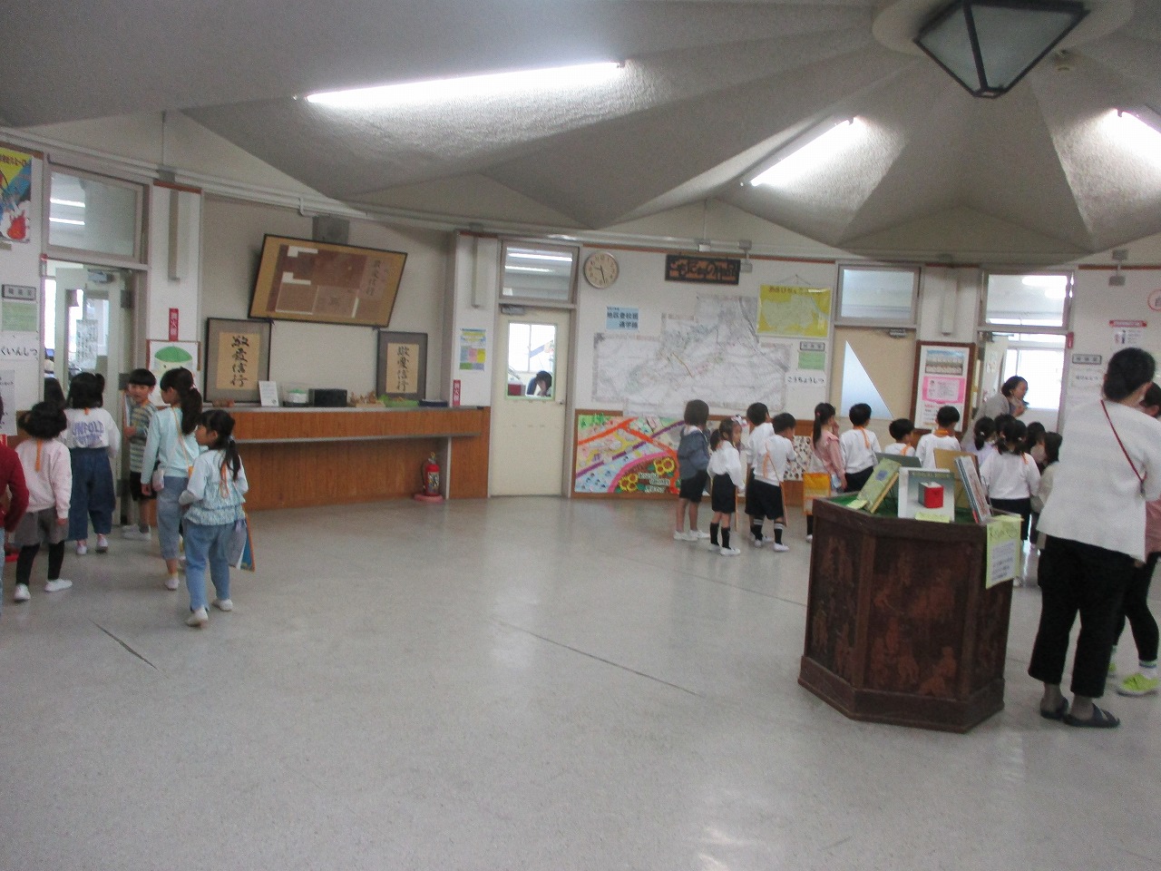 本日の1,2限目に学校探検をしました。