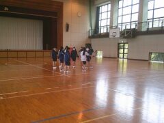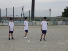 体育では、集団行動を行っています。