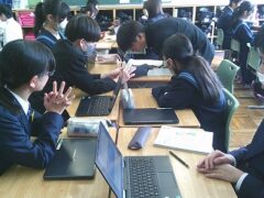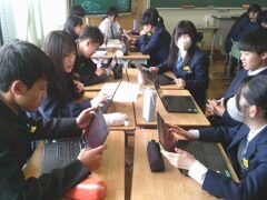 タブレットを活用したりグループで話し合いをしたりしました。