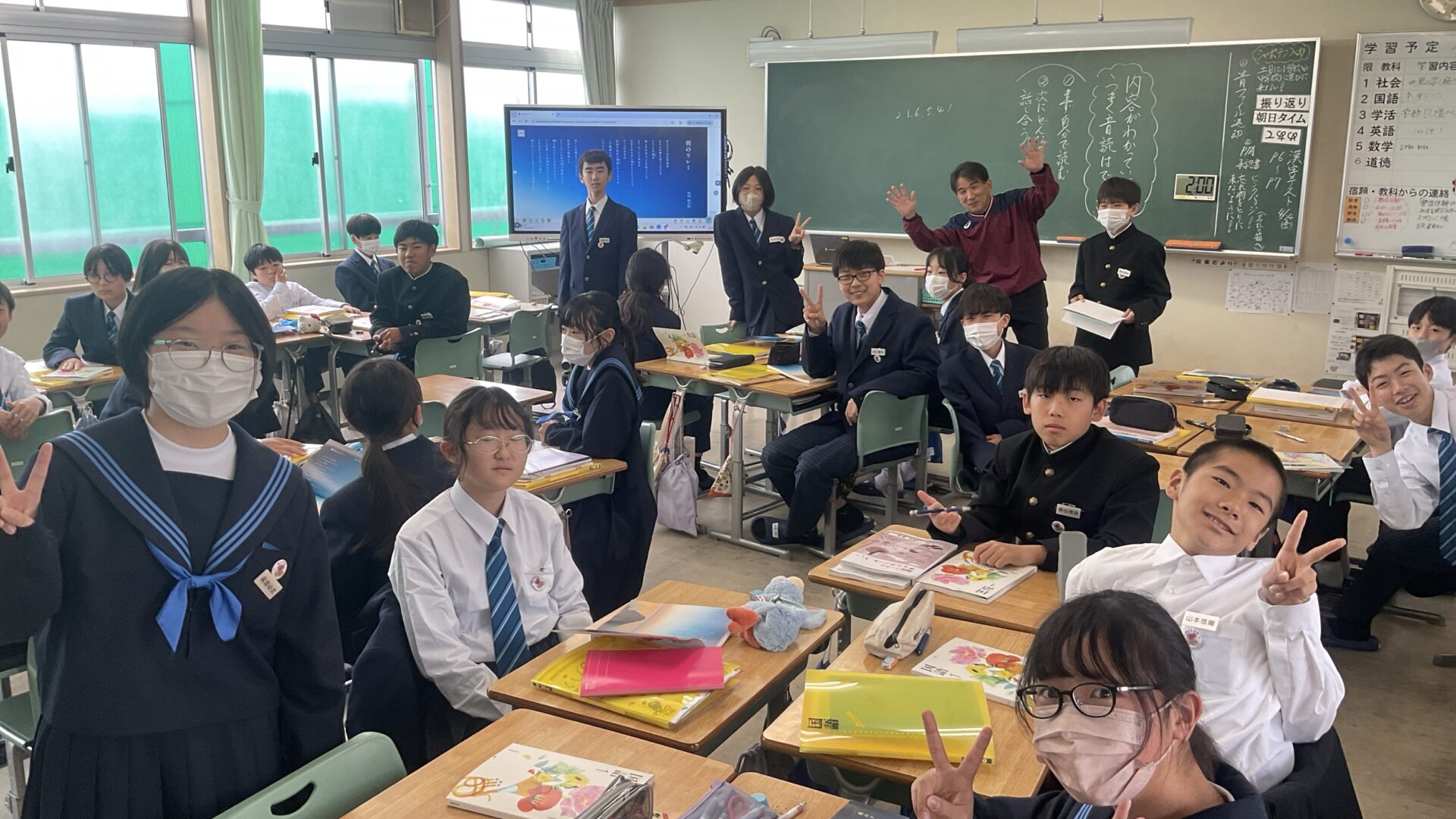 今日は中学校で初めての道徳がありました。中学校では、先生みんなで道徳の授業をしているため、道徳は何先生が来るかわかりません。みんな、「誰がくるのかなぁー?」と楽しみにしていました。