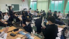 どの授業でも仲間と話し合い、活気のある雰囲気で授業が進んでいました。