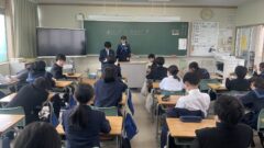 キャリア教育に引き続き、自然教室の説明をしてもらいました。みんな目を輝かせて説明を聞いていました。これから、5月14日(木)15日(金)に行われる自然教室に向けて、準備を進めていきます。