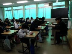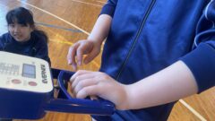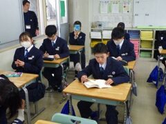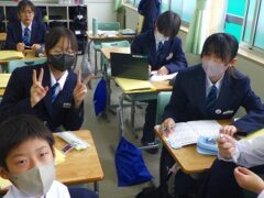 国語の授業ではクラス全体の前での発表、体育の授業では新体力テストの握力、学活の授業では学級目標決めをしていました。