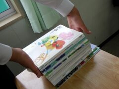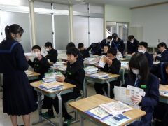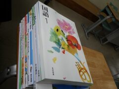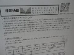 続いて、2年生用の教科書、通信、いろいろなお知らせプリントの配付です。