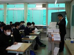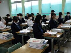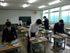 2限目の学級開きでは、担任の先生からの話や教科書、プリントの配布です。