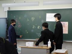 今日は待ちに待った朝日中学校の入学式!みんな緊張していましたが、「さあ、やるぞ!」という意欲にあふれていました。多目的ルームで入学式の説明をしていた時も、「わかりましたか?」と言うと、「はい」と、良い返事が自然にできていました。すごく素直な子どもたちで、明日からの中学校生活がとても楽しみになりました。これから、嬉しいことや楽しいこと、時には、悲しいことや苦しいこともあると思われますが、みんなで助け合って「笑顔満開」の中学校生活にしていきましょう。