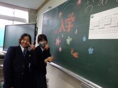 入学のお祝いのメッセージも黒板に工夫して書いてくれます。