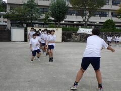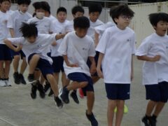 回し手、跳び手、声掛けの仕方など、クラスで工夫して練習していました。