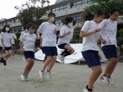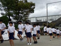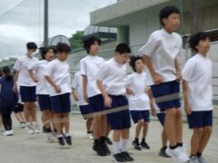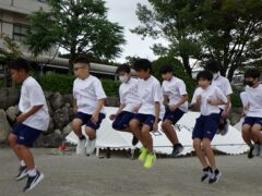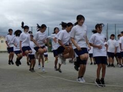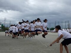開会式練習の後、クラスごとに大縄跳びの練習をしました。