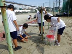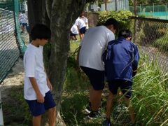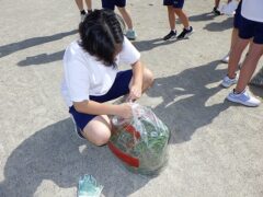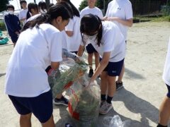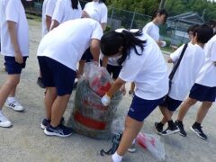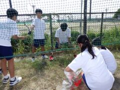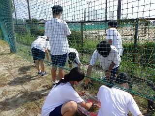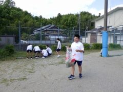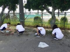 1年生たちは、グランド清掃(石拾い)、除草作業、外トイレ清掃なとが担当でした。