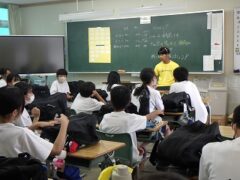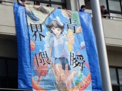 開会式では、校長先生、生徒会会長のあいさつに続き、美術部制作の見事なテーマパネルが披露されました。