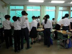 6限目には新しい班の発表です。班が替われば、席も替わります。
