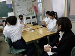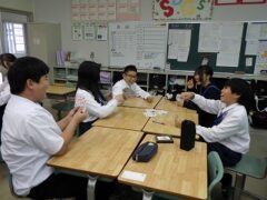 新しい班のメンバーにあいさつです。「これからよろしくお願いします!」