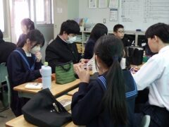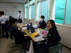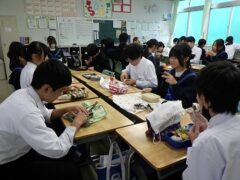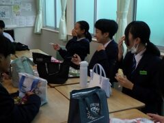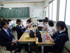 給食の日と同じように、ランチグループで楽しくいただいています。