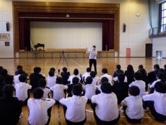 まず初めに、音楽の先生からリハーサルの手順や諸注意を聞きます。