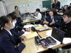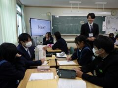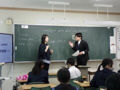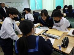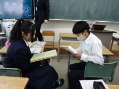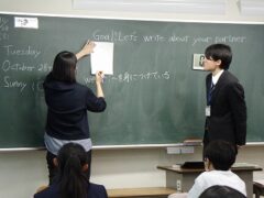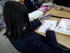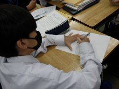 ペアで会話をしたり、グループで伝え合ったりしています。
