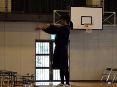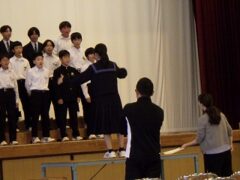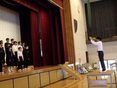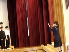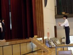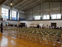 パイプ椅子が並ぶ、本番同様の体育館での練習です。