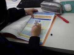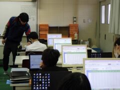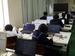 教科書、資料を参考に、ワークシートへの書き込みをしています。