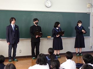 2学期の振り返りと冬休みに向けて、学年集会をもちました。