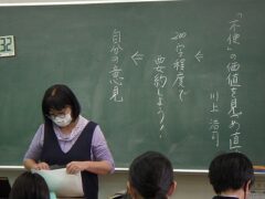 3組は国語で、説明文「不便の価値を見つめ直す」の要約文に取り組んでいます。