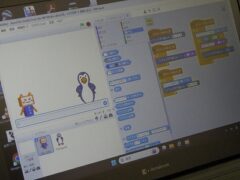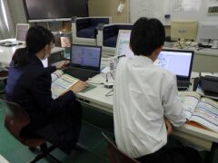 4組は技術で、プログラミングの学習です。教え合いながら、学習をすすめています。