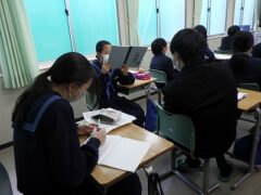 教科書や資料から、まずは個人で答えを考え、その根拠を探っていきます。