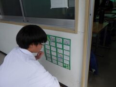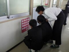 休み時間には、掲示されたメッセージを熱心に読んでいます。