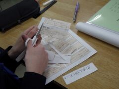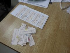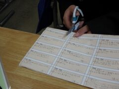 今日は、書きあがった「サンキューカード」を一人分ずつ切って、手渡しします。