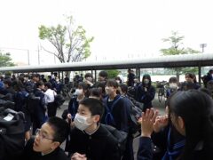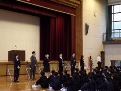 新しいクラスに入り、朝の準備の後、体育館で始業式が行われました。