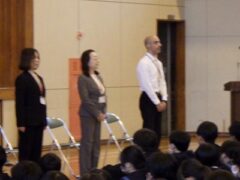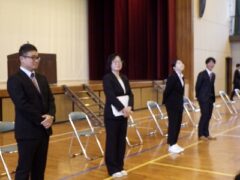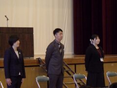 着任式では、新しく朝日中に来られた先生方の紹介です。