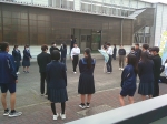 2年生も東門や昇降口に立って、大きな声であいさつを交わしています。