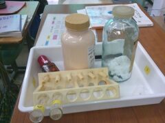 理科の授業では実験のまとめをしています。先日、理科室で行った実験のおさらいです。