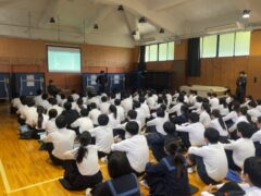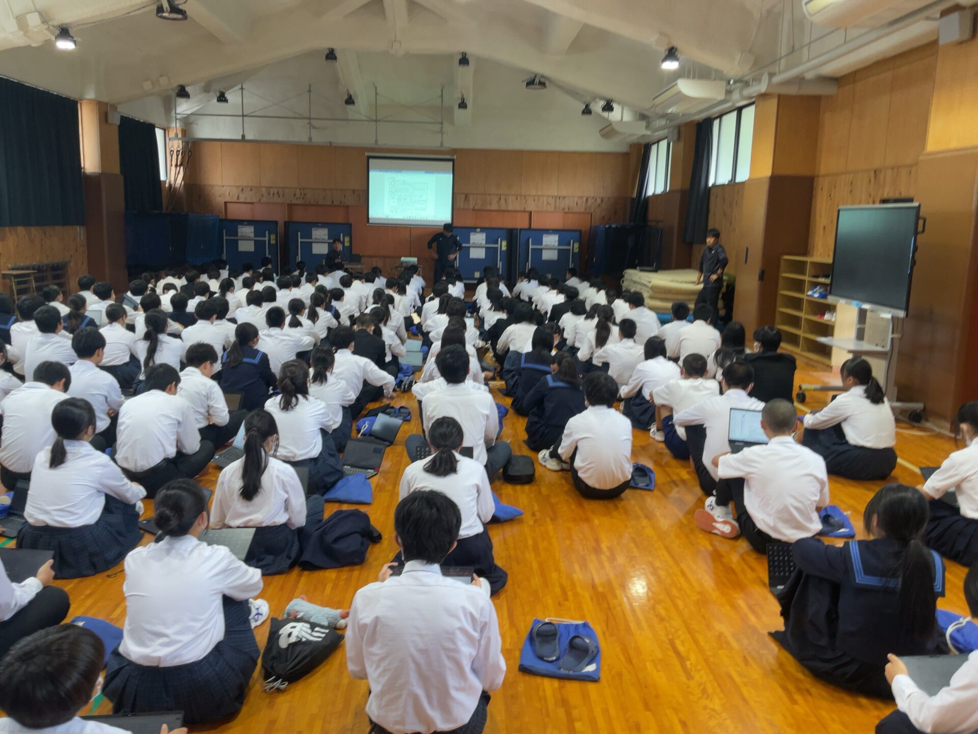 はじめに生徒指導の先生から、日頃の学校生活についてのお話がありました。