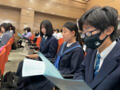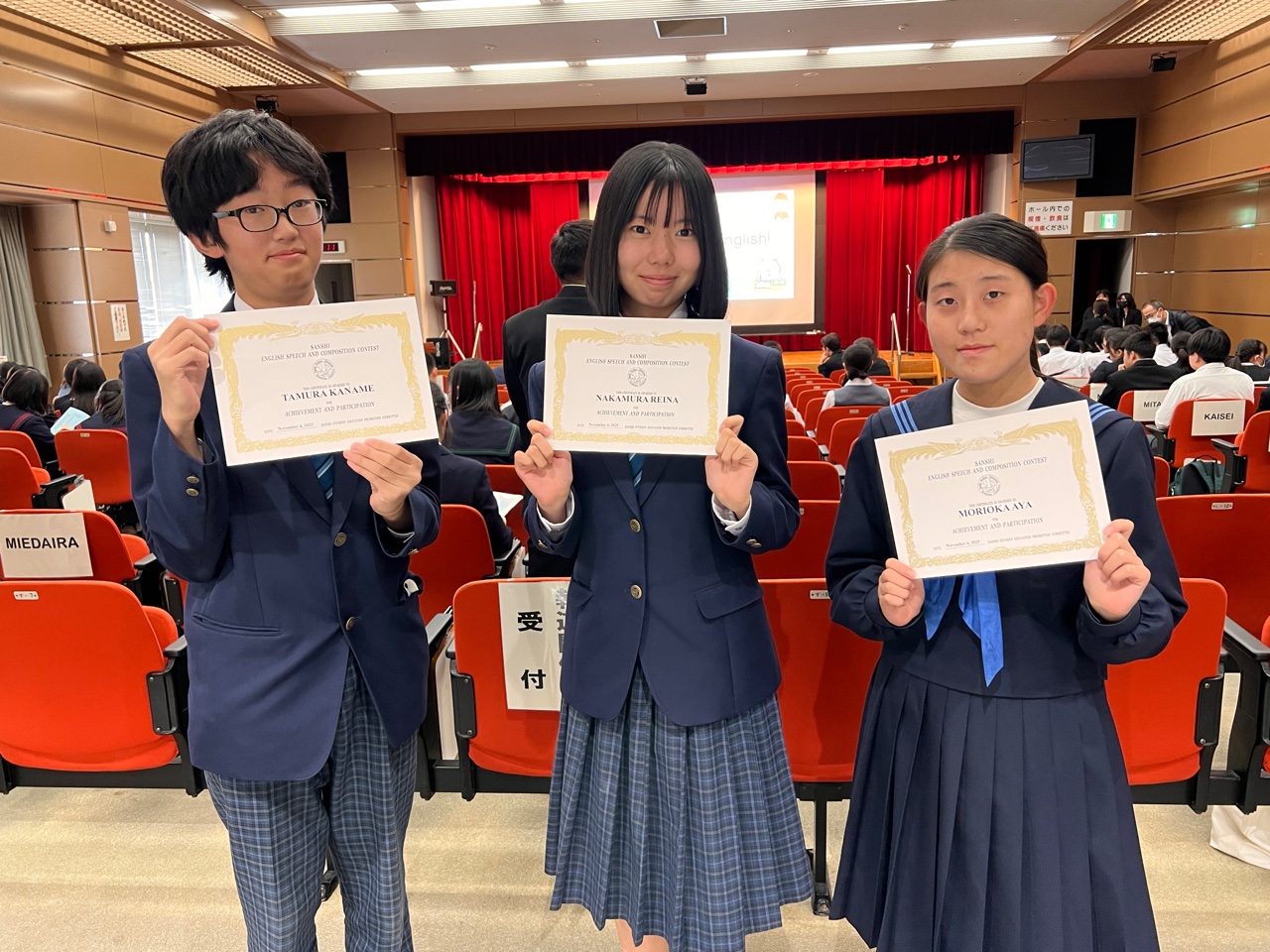 朝日中学校からは3年生3名(1名は英語スピーチコンテスト、2名は英作文コンテスト)が参加しました。