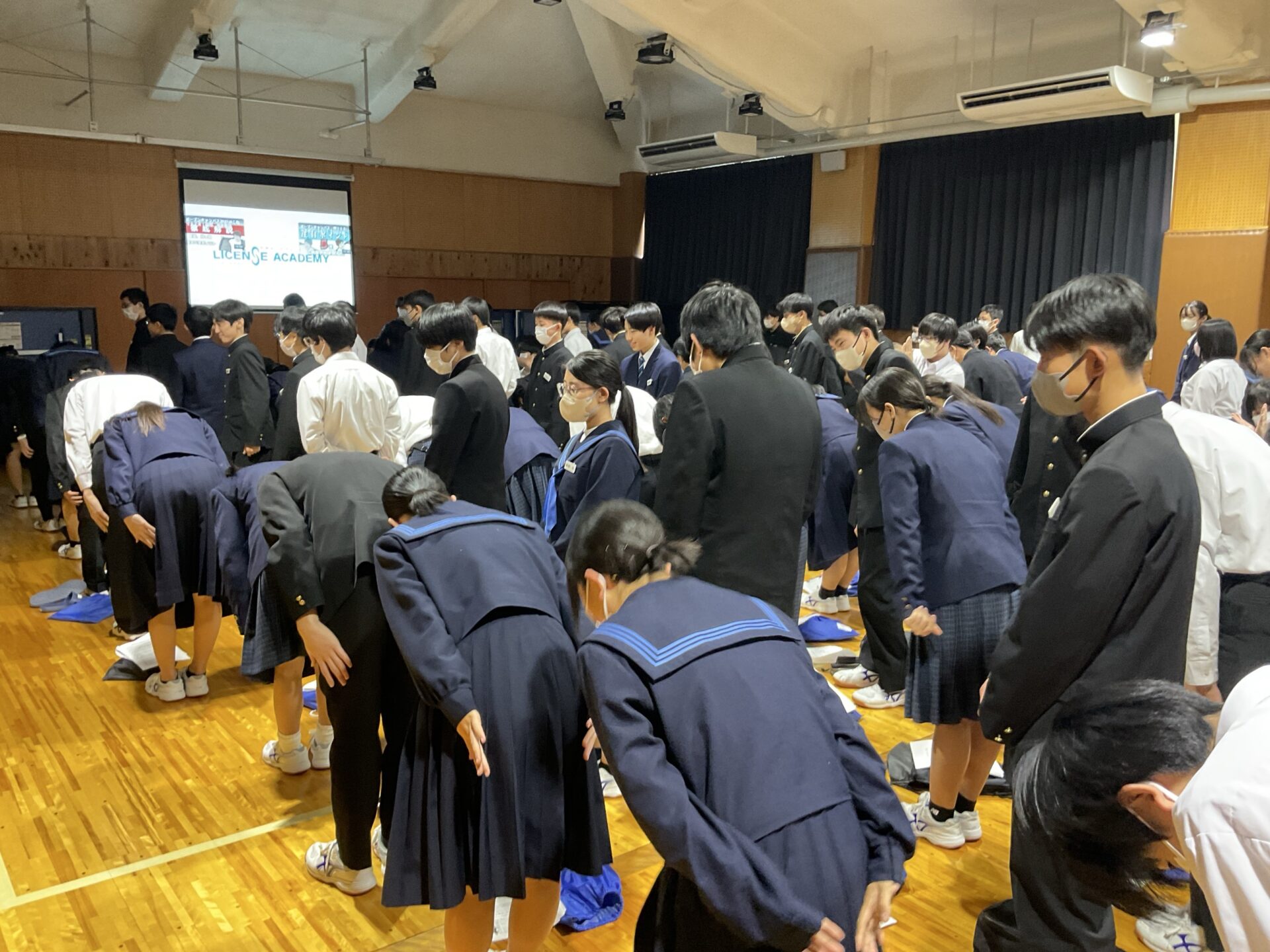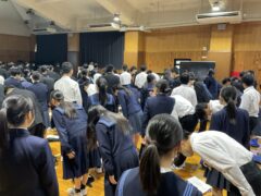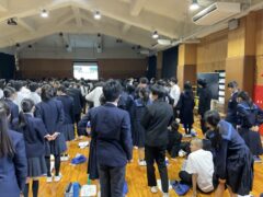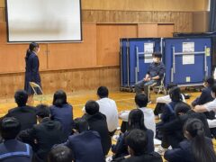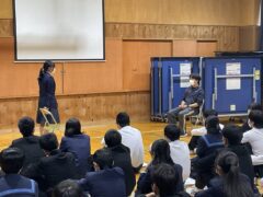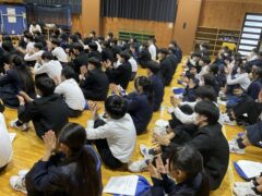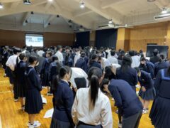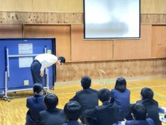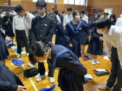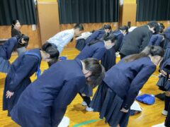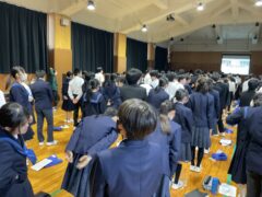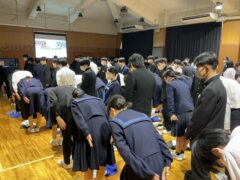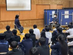 学年集会では面接について学びました。私立高校の推薦入試、県立高校前期選抜を受験する人の多くは、受験科目に面接があります。面接ではどのような言葉遣い・振る舞いをするのが望ましいのか、控え室ではどのように待つべきか、などの話もありました。