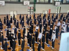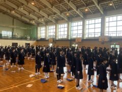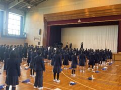 今日も体育館での卒業式歌練習です。