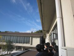 理科の授業で、天体の学習「月の満ち欠け」に取り組みました。まずは教室で、地球と太陽、月の位置関係が織りなす見え方の変化を理論的に学習。その後、ベランダに出て実際の空を観察しました。下弦の月の様子や太陽と月がほぼ直角(約90度)の位置にあることを自分の目で確かめられた瞬間、生徒たちからは自然と感動の声が上がっていました。座学と実体験が結びつき、学びが深まる素晴らしい時間となりました。