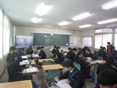 また、2年生の廊下には、近隣の高校について調べた掲示物が並んでいます。3年生は今日から、進路決定に向けた「後期選抜三者懇談」が始まりました。2年生にとっても、最高学年への進級まであと2か月。今のうちから自分の進路に目を向け、意識を高めていくことを大切にしていきたいですね。