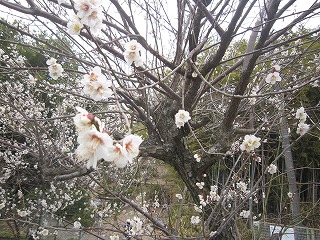正門のそばでは梅の花が咲き始めました。