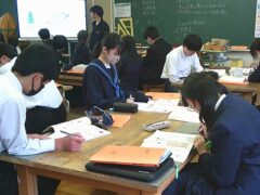 集中して先生の話を聞き、ワークシートにしっかりとメモをとっていますね。